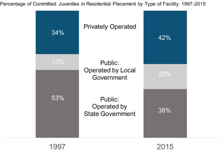 Reformers and justice advocates see privately operated adult prisons as income generators for a self-interested network of carceral entrepreneurs who pursue private gain while wrongly usurping the punishment power of the government. Some advocates aim these same criticisms at the juvenile justice system. Is it appropriate for critics of private prisons to use the same arguments against the use of juvenile facilities and residential placements for court-ordered youth? If privately operated youth facilities are inherently problematic, some important changes are needed in youth justice policy. As youth crime rates began to fall across the country, many states reduced or even closed their large publicly operated secure facilities. As a result, private facilities now make up a larger share of youth confinement space in the United States.